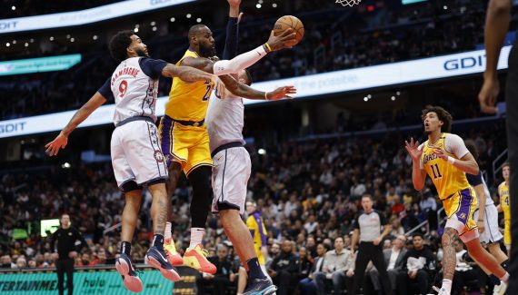 Comme prévu, les Lakers commencent cette rencontre sans Anthony Davis, blessé lors de la rencontre à Philadelphie, mais ils n’en souffrent pas. Les Wizards ne défendent pas, et Jaxson Hayes peut se faire plaisir à l’intérieur. Les Californiens inscrivent pas moins de vingt points dans la raquette dans le premier quart-temps, et LeBron James s’offre un panier primé du logo. Tout va bien pour Los Angeles (29-42).