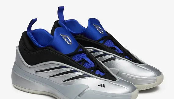 Damian Lillard pourrait ainsi porter ce nouveau coloris « Silver Metallic » ce week-end pour le rendez-vous des étoiles. La base en mesh noir ressortant sur la partie supérieure est assortie d’une superposition synthétique d’un gris « métallique » qui se poursuit sur la semelle. La languette ressort en bleu marine, portant le logo du joueur en gris métal.