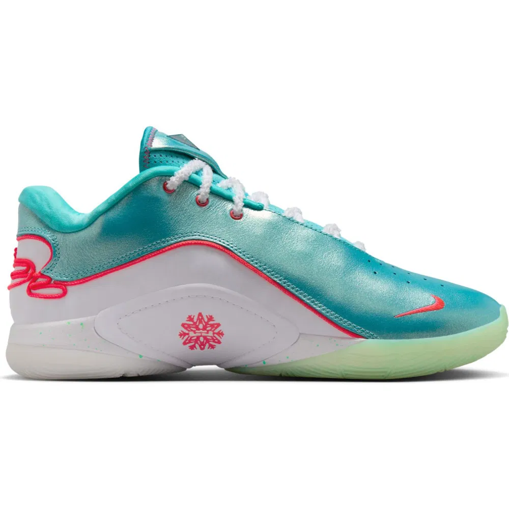 Là aussi, les finitions peuvent changer selon les coloris, déjà au nombre de huit disponibles à la vente en France. Sur la LeBron 22 « Christmas Limelight », les lacets sont apparentés à des flocons de neige. On retrouve également un flocon sous le milieu du pied, tandis que le revêtement de la semelle extérieure fait également penser à des cristaux de neige. Autant de petits détails qui changent au fil des coloris et offrent ses spécificités à chaque modèle.