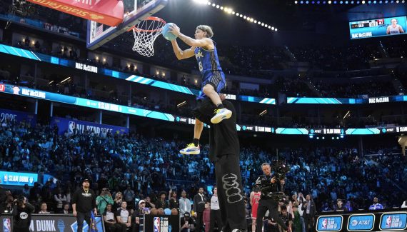 “Oh my Godness !”, s’est exclamé l’un des speakers du concours, époustouflé par la prouesse et l’audace du meneur de 26 ans du Magic. Rendant hommage à Blake Griffin, il a réussi à passer par-dessus une voiture pour sa première réalisation, avant de claquer un dunk arrière. Ses adversaires, surtout Matas Buzelis et Andre Jackson Jr, n’ont pas affiché une grosse résistance.