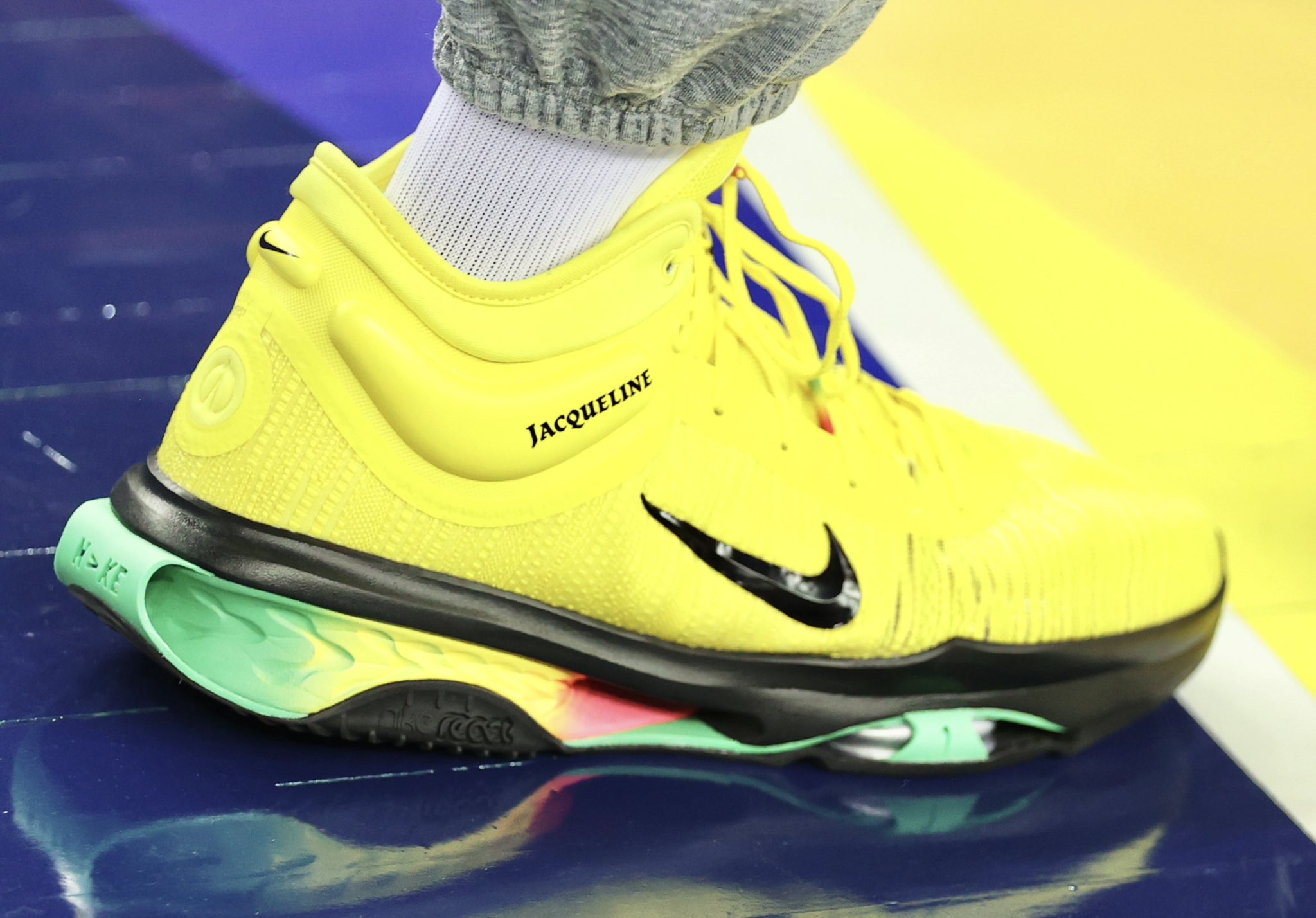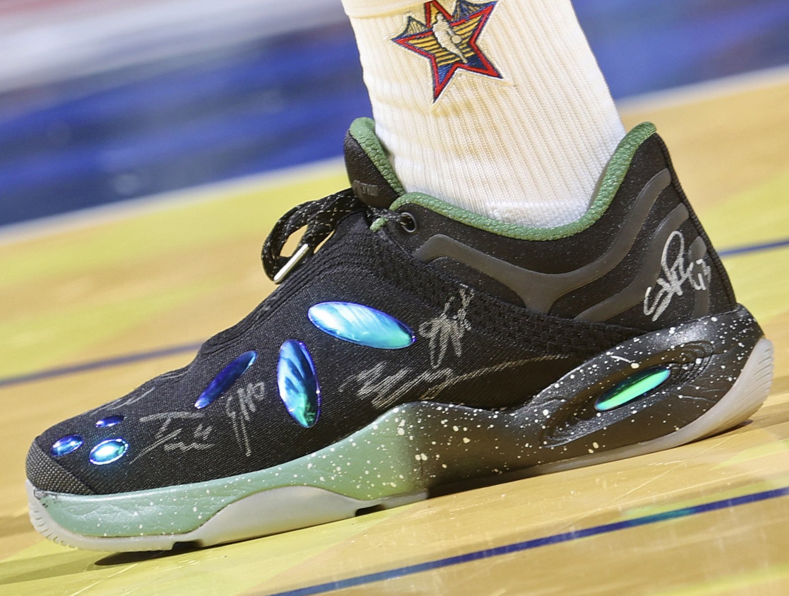 James Harden n’est pas passé inaperçu non plus avec sa Adidas Harden Vol.9 « Pink Pony » en rose fuschia. Karl-Anthony Towns portait pour sa part un coloris principalement jaune et noir de la Nike GT Jump 2, le modèle portant le nom Jacqueline en hommage à sa défunte mère. Jaylen Brown a quant à lui profité de l’événement pour se créer une version unique de sa 741 Rover, l’ailier des Celtics ayant fait signer sa paire par plusieurs des joueurs présents au All-Star Game.
