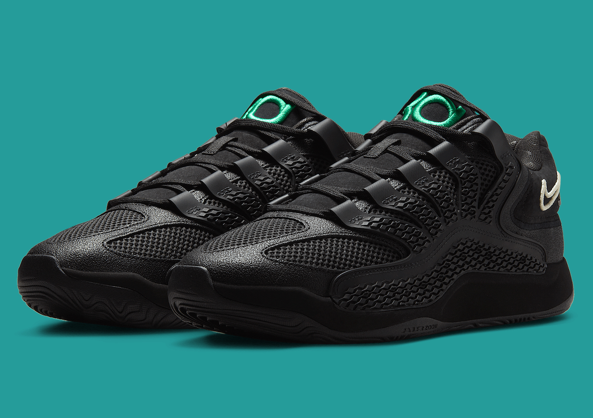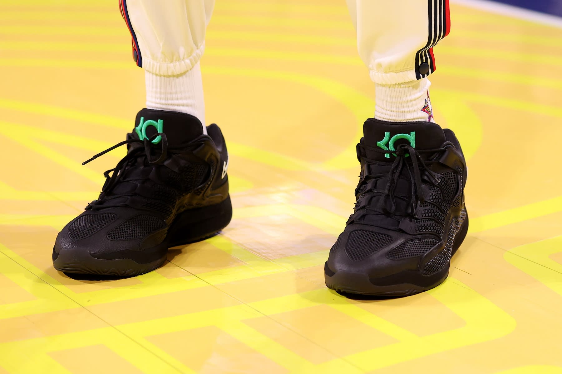 L’autre nouvelle chaussure signature de la soirée a clairement été la KD 18, dont la sortie mondiale se précise plus que jamais pour les semaines à venir. Kevin Durant en a profité pour faire la promotion de son tout premier coloris « Black Label » avec une tige entièrement noire aux finitions bleu turquoise sur la languette. Un coloris qui envoie du très lourd pour un modèle signature toujours aussi attendu !