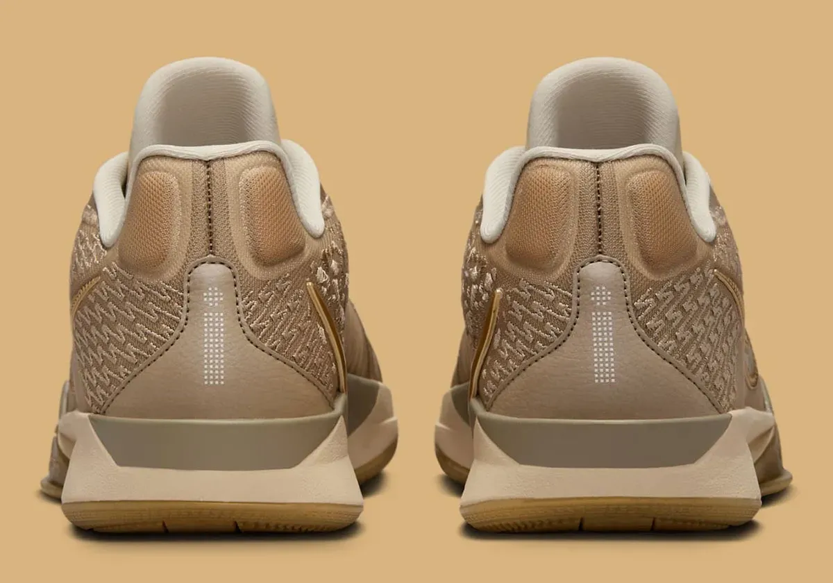 On retrouve une tige alliant beige, marron et blanc nacré, mais ce sont surtout les finitions couleur or qui attirent l'attention, comme sur le « Swoosh » présent sur l'empeigne, le logo « S » de la joueuse sur la languette ou encore au niveau de la semelle extérieure.