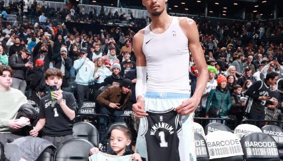 C’était l’une des jolies images de la fin d’année 2024, lorsque Victor Wembanyama a répondu favorablement à la demande d’un fan pour « échanger » son maillot. La photo de Wemby avec un maillot taille enfant aux côtés du jeune fan brandissant fièrement son maillot « City Edition » avec lequel l’intérieur français venait de jouer face aux Nets avait fait le tour de la planète basket.