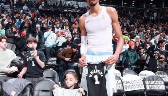 Moins d’une semaine après avoir vendu aux enchères un maillot porté en match par Victor Wembanyama pour 73 200 dollars, le vendeur souhaite annuler la vente. On ne sait pas s’il a été repris de remords, ou qu’il a estimé qu’il aurait pu en tirer plus, mais le dénommé Frankie Desideri Sr. a déposé lundi une demande d’ordonnance restrictive temporaire contre Goldin Auctions pour stopper la vente du maillot, récupéré par son fils lors du passage des Spurs de “Wemby” à Brooklyn.