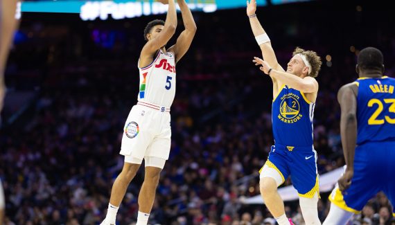 Si Quentin Grimes répond à la star de Golden State, c’est un 6-0 personnel de Guerschon Yabusele (18 points, 5/7 à 3-points) qui ramène les Sixers (30-24). À l’image de Kelly Oubre Jr. (20 points), les hommes de Nick Nurse prennent feu et passent un 17-2 à leurs adversaires pour prendre onze longueurs d’avance (50-39) !