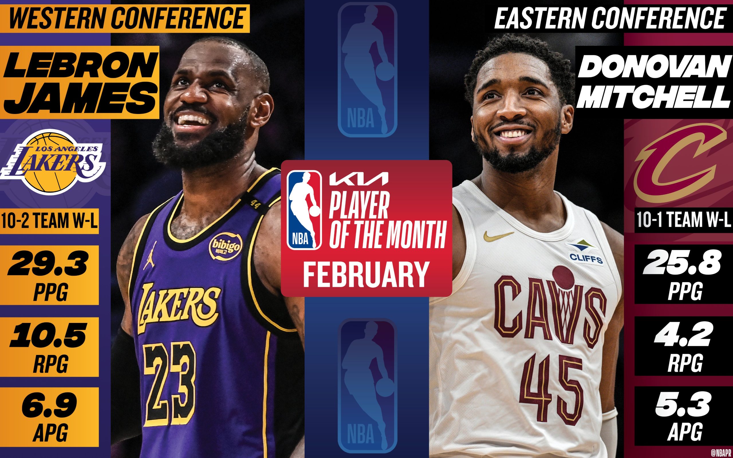 À l’Est, c’est Donovan Mitchell qui est choisi pour mettre en avant la superbe période des Cavaliers, vainqueurs de 10 de ses 11 matchs en février. Avec ses 25.8 points, 4.2 rebonds et 5.3 passes de moyenne, l’arrière de Cleveland est surtout très juste dans un collectif qui tourne à plein régime.