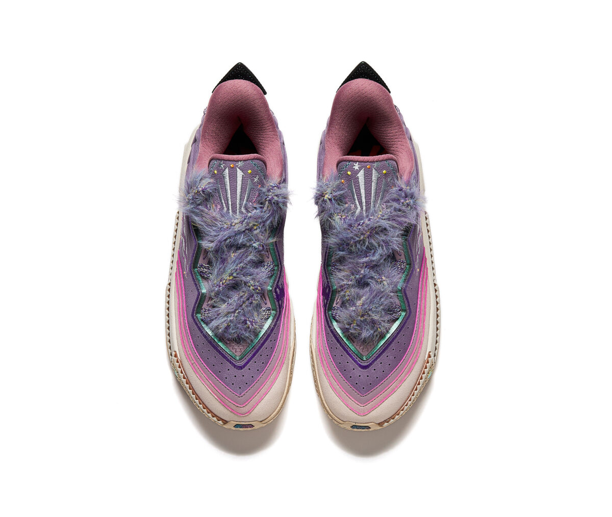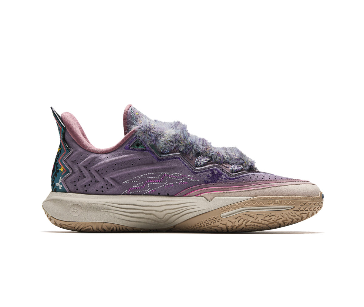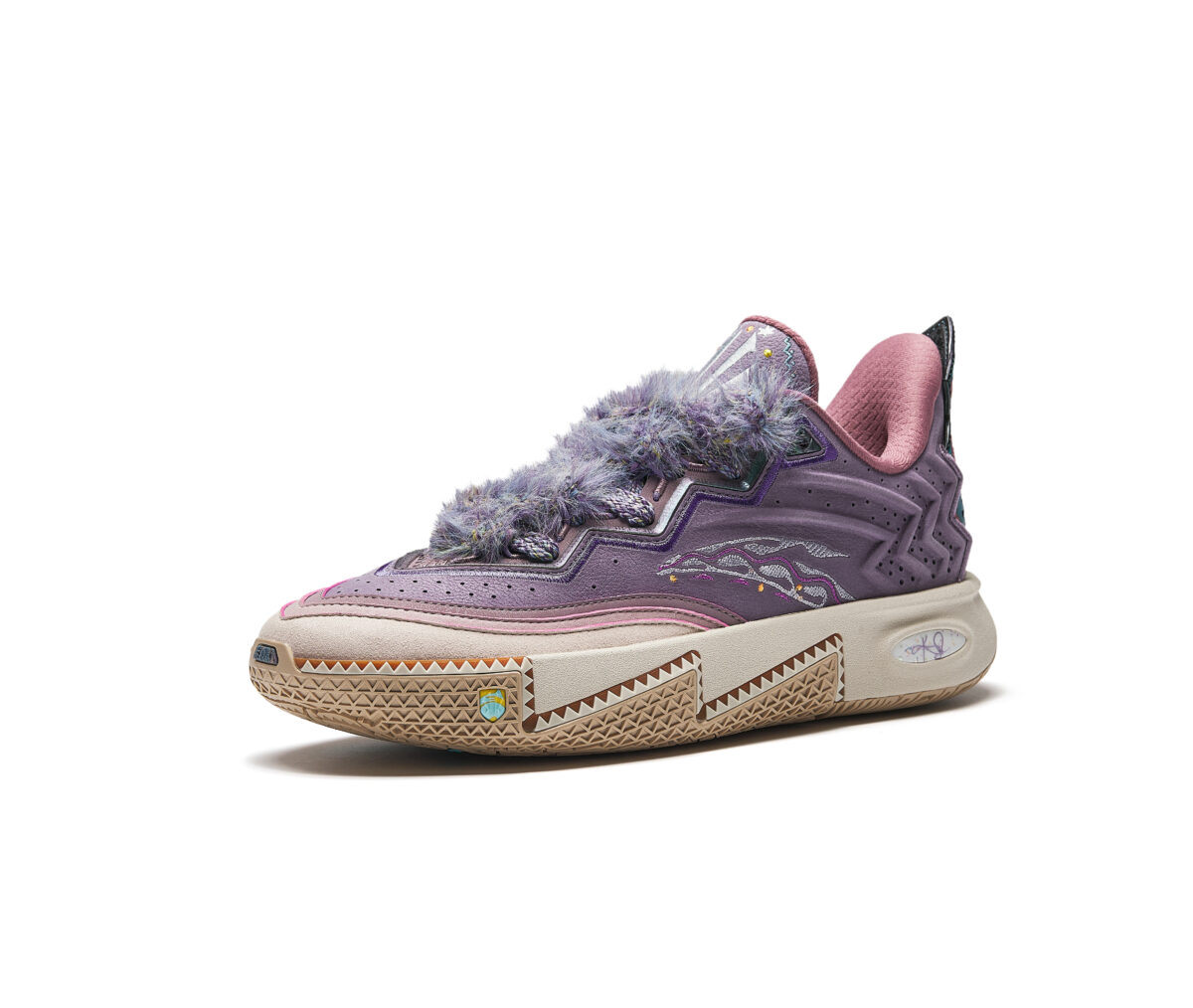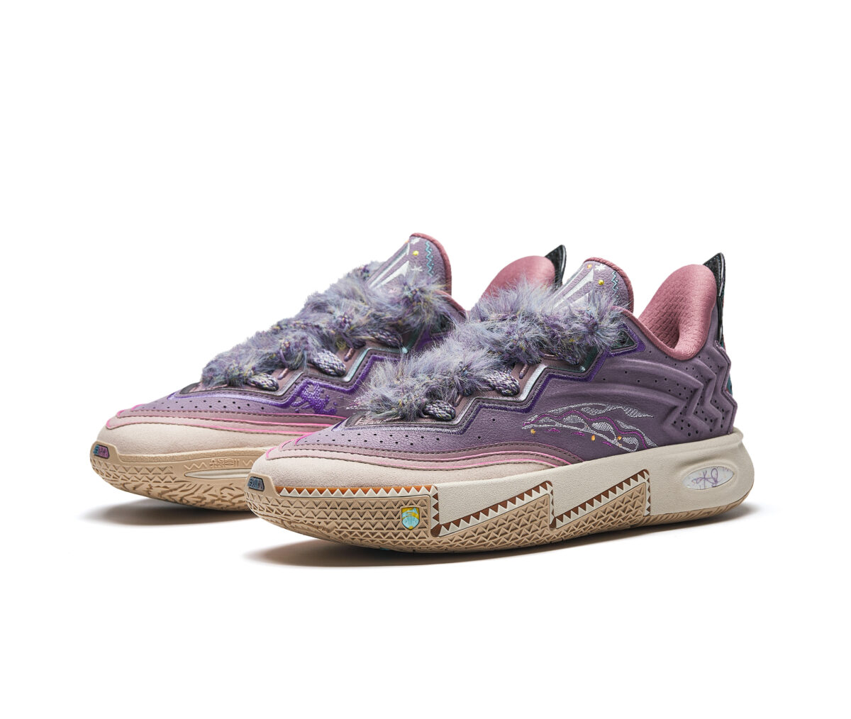 Dans la lignée de la Anta Kai 1, cette nouvelle mouture fait la part belle à ses origines amérindiennes, que ce soit au niveau des motifs présents sur l’ensemble de la paire, sur le talon, la semelle ou la languette, ou des matériaux comme cette touffe recouvrant la languette qui fait toute la singularité de ce modèle.