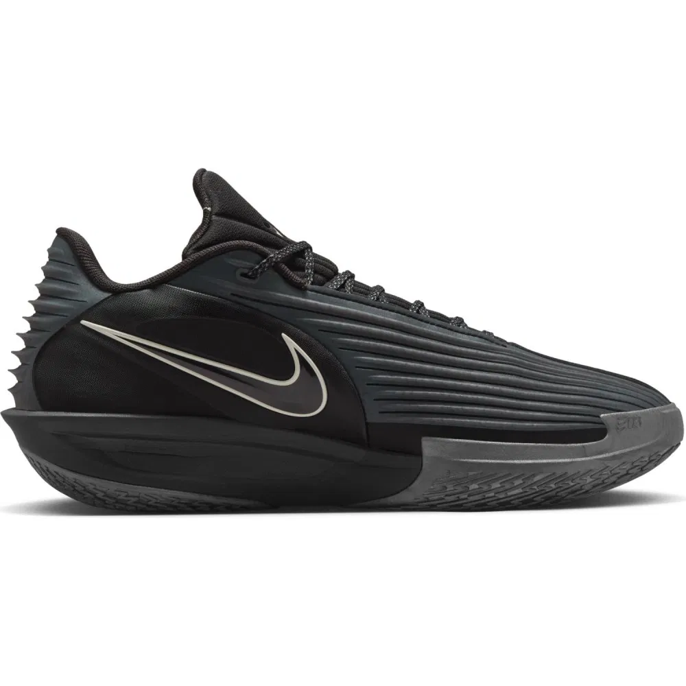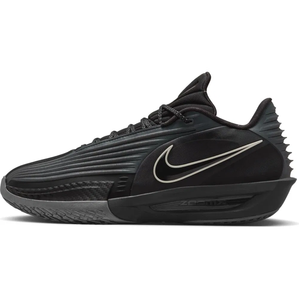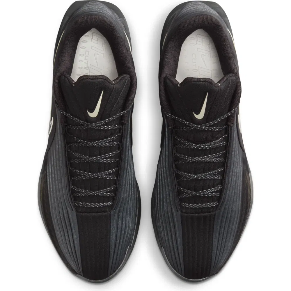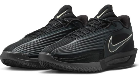 Comme pour les autres modèles, la troisième Nike GT Cut du nom arbore ici un coloris simple mais efficace, en noir avec des finitions en blanc nacré, comme sur le « Swoosh » présent sur la languette, ou les contours de celui-ci sur l’empeigne.