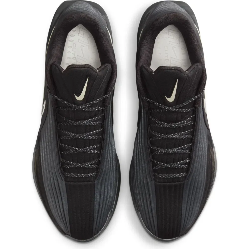 Comme pour les autres modèles, la troisième Nike GT Cut du nom arbore ici un coloris simple mais efficace, en noir avec des finitions en blanc nacré, comme sur le « Swoosh » présent sur la languette, ou les contours de celui-ci sur l'empeigne.