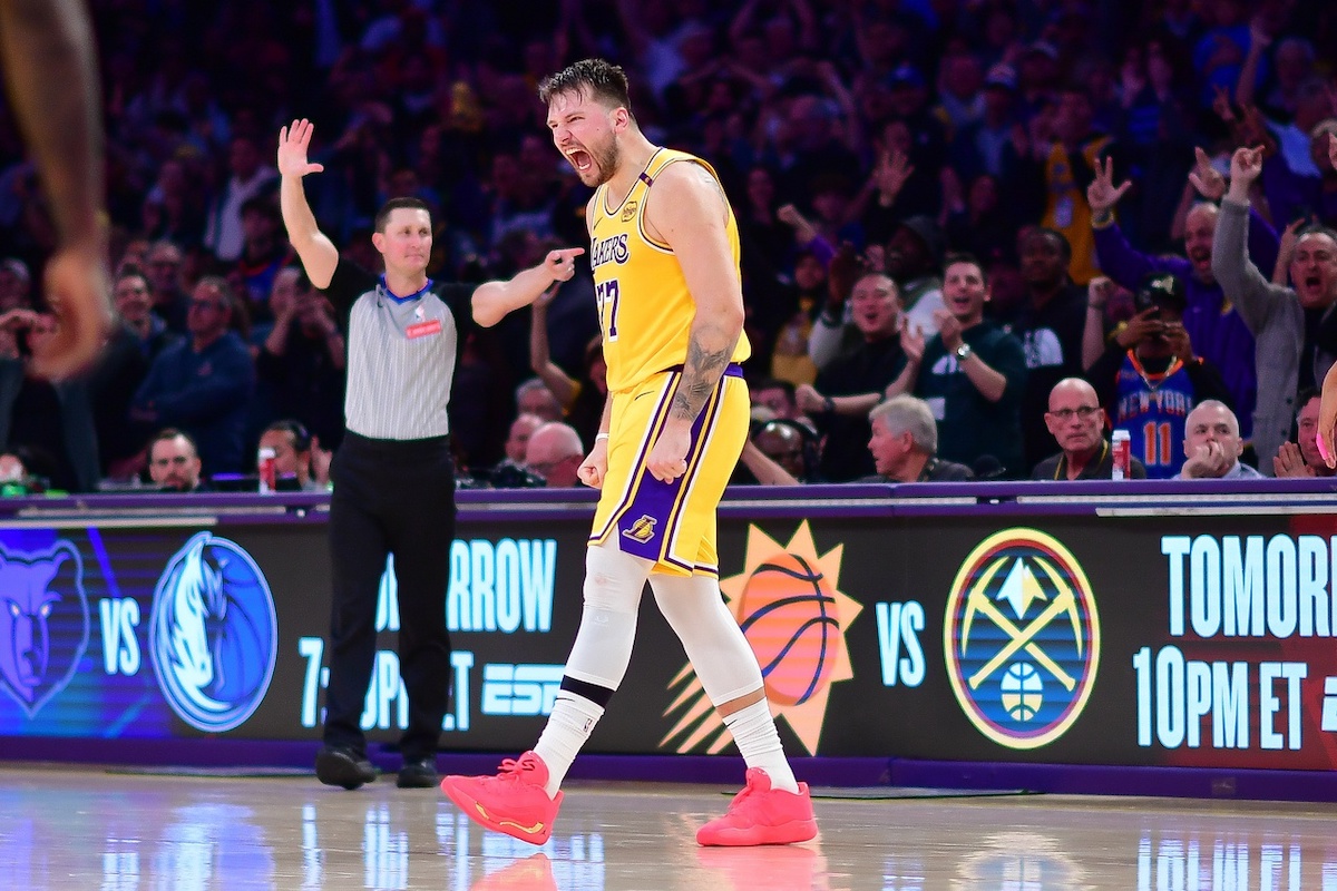 Un mois après s’être imposés au Madison Square Garden – ce match avait précédé le transfert pour Luka Doncic – les Lakers s’imposent à nouveau face aux Knicks. Cette fois, dans des conditions beaucoup plus rocambolesques. Il a fallu une prolongation (113-109) et les gros double-double du Slovène et de LeBron James pour éteindre les Knicks d’un immense Jalen Brunson (39 points et 10 passes). Et signer une 8e victoire de suite !
