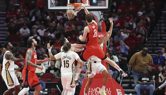 Trey Murphy III a même réussi à refaire passer New Orleans sous les 10 points d'écart (64-55). Houston a alors retrouvé le droit chemin avant la pause, par l'intermédiaire d'Amen Thompson, du block d'Alperen Sengun sur Kelly Olynyk et des paniers à 3-points signés Jalen Green et Dillon Brooks (74-58).