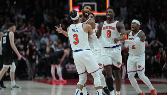 Du suspense à Portland puisque les Knicks s'imposent 114-113 après prolongation sur un 3-points au buzzer de Mikal Bridges. Scoot Henderson (30 points) avait envoyé tout le monde en prolongation en plantant huit points en une minute pour égaliser (106-106). Puis Deni Avdija pensait avoir fait le plus dur en donnant l'avantage aux Blazers à trois secondes de la fin. Mais sur la dernière possession, Bridges fait la remise en jeu pour Josh Hart, qui lui fait un “main à main”, et là, l'ailier des Knicks balance un 3-points qui fait mouche dans un silence de cathédrale !