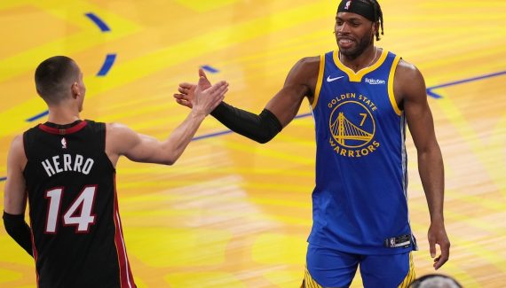 « Je me suis dit que j’aimerais bien que ce soit moi, parce qu’il a marqué cette franchise de son empreinte, et je sais ce qu’il représentait pour cette franchise et pour la ville de San Francisco », dit encore Buddy Hield, dont le profil intéressait sans doute très peu le Heat, à la recherche d’un poste 3 de haut niveau en remplacement de Jimmy Butler, et dont le salaire (8.8 millions de dollars) ne suffisait de toute façon pas à équilibrer l’échange, contrairement aux 26.3 millions de dollars touchés cette saison par Andrew Wiggins…