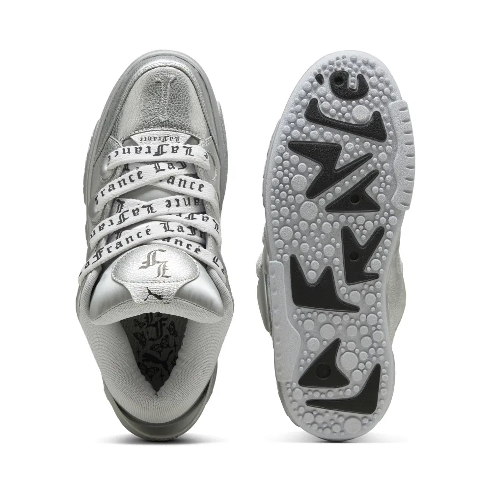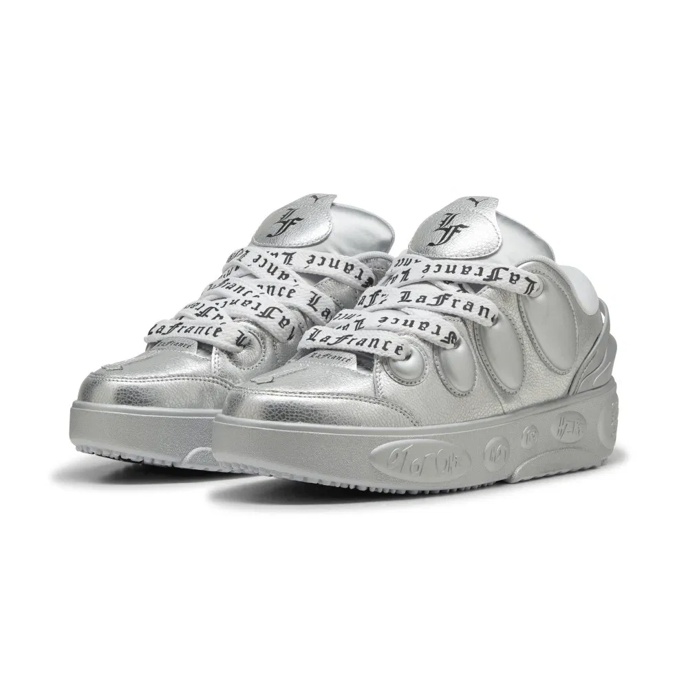 Cette fois, c’est à son modèle lifestyle « La Francé » de refaire parler de lui avec l’arrivée de deux nouveaux coloris en France. Rien d’extravagant (pour une fois !), on est même plutôt sur du classique avec deux coloris chromés en argent et en noir. Sur la version argentée, le logo de la marque de LaMelo Ball « La Francé », tiré de son deuxième prénom, est visible sur la languette, et son nom est inscrit en noir sur les lacets, et inversement sur le coloris noir, où les finitions apparaissent en gris.