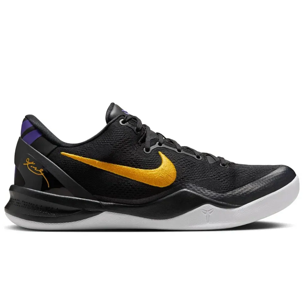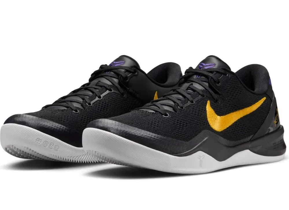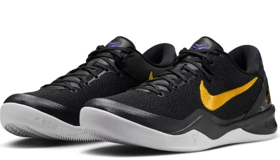 La Kobe 8 Protro Black rend également hommage aux Lakers, la franchise où Kobe Bryant a joué toute sa carrière, avec une tige noire complétée par des finitions en violet, pour faire ressortir le logo du joueur sur la languette et le talon, et en doré, sur le “Swoosh” présent sur l'empeigne ou encore la signature de Kobe Bryant, qu'on retrouve également sur le talon, l'ensemble reposant sur une semelle extérieure grise.
