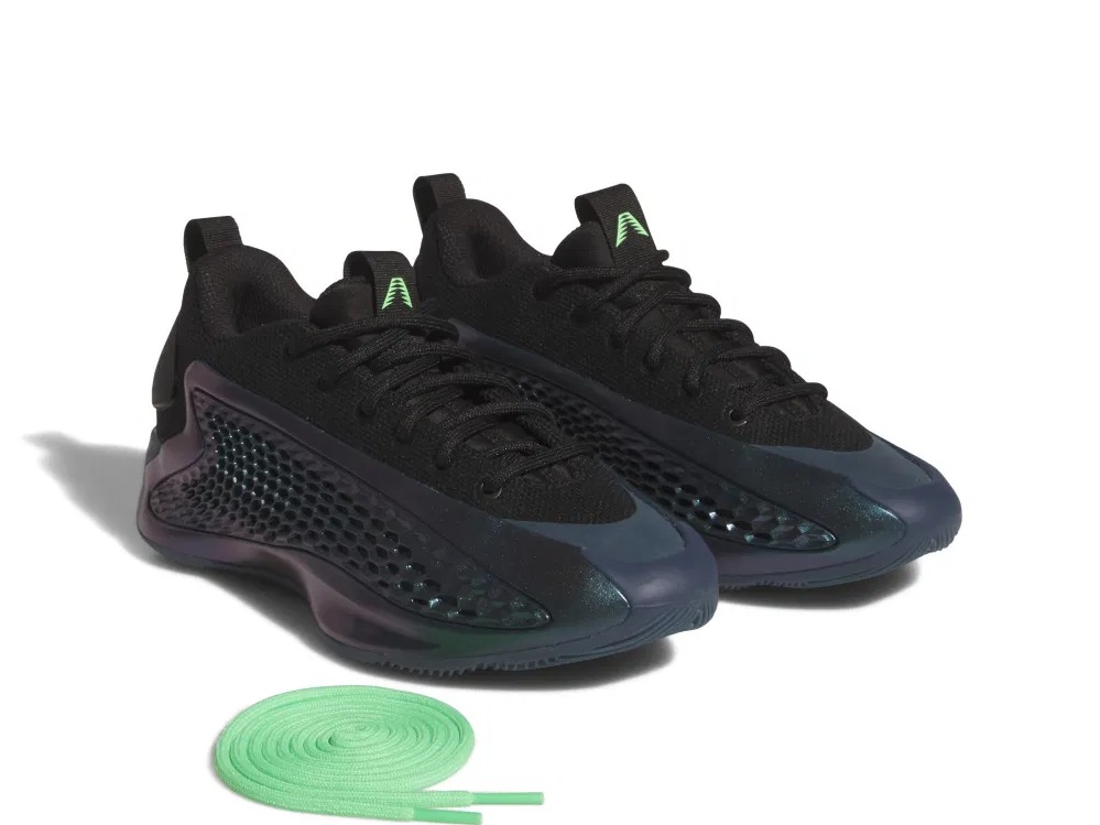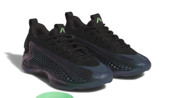 Là revoilà (déjà) dans la lumière en version Low au sein du pack “Metamorphosis” dans un style “vert émeraude” qui n’est pas sans rappeler les couleurs des Wolves, avec des finitions en noir et une touche de vert clair pour faire ressortir le logo d’Anthony Edwards sur la languette et les trois bandes d’adidas sur le talon, ou encore sous la semelle. Pour les lacets, c’est au choix : soit vert clair ou noir.