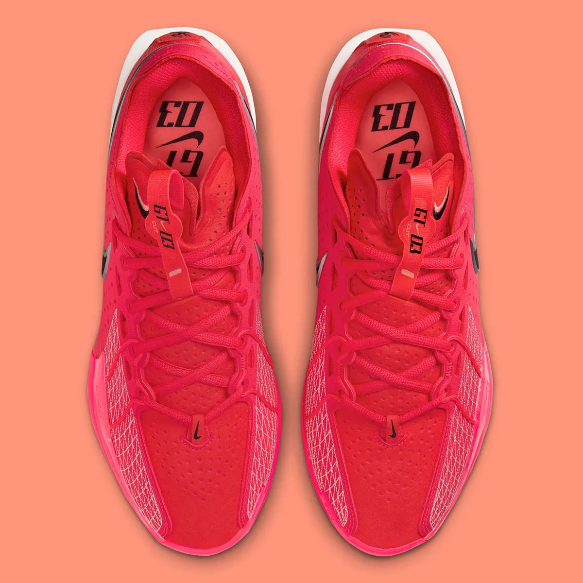 Les nouveaux coloris de la GT Cut 3 sont donc scrutés avec la plus grande attention, et cette nouvelle version pourrait bien connaître un nouveau succès, avec sa tige en rouge-orange et ses finitions en noir et argent. La semelle ressort en rouge sur la partie avant et en blanc à l’arrière tandis que la mousse Zoom X emprunte également un ton orange, l’ensemble reposant sur une surface extérieure translucide.