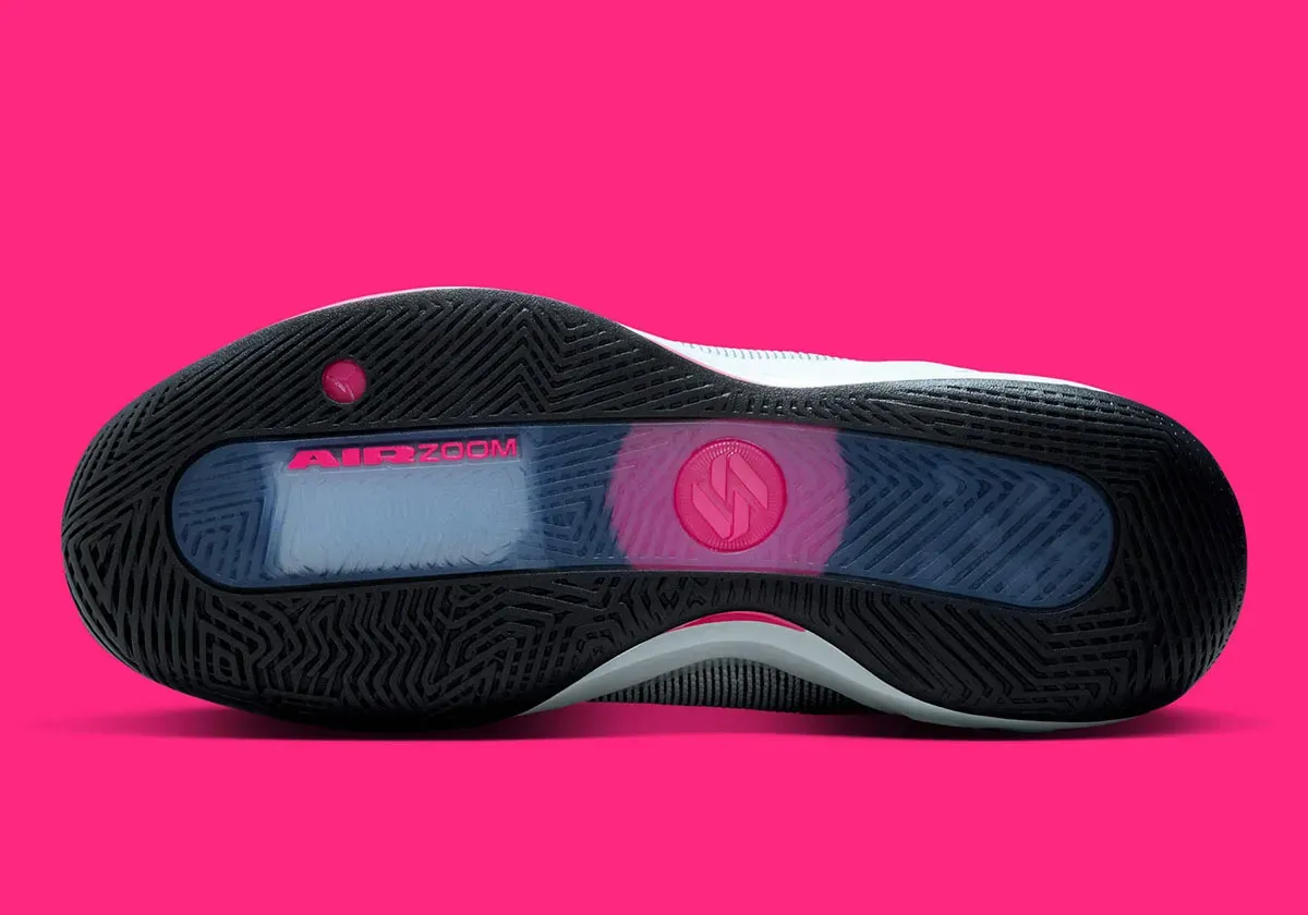 Voici donc les images officielles de ce premier coloris « Hyper Pink » avec une tige en noir et blanc assortie de touches de rose en guise de finitions, pour logo de l'international slovène sur la languette ou pour faire ressortir la mention «Air Zoom » sur la semelle, avec une unité qui court sur toute la longueur.