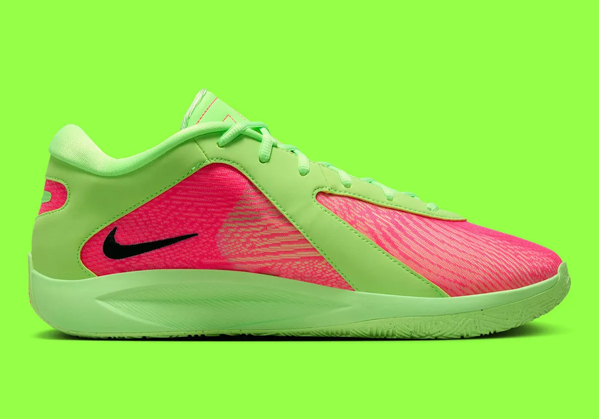 La Giannis Freak 6 « Eva » est ainsi habillée d’une tige rouge aux finitions en vert avec deux logos « Swoosh » ressortant en noir. Le modèle était annoncé pour le 1er avril sur le sol américain. Pas de blague, il est déjà dispo sur Basket4ballers au prix de 135 euros.