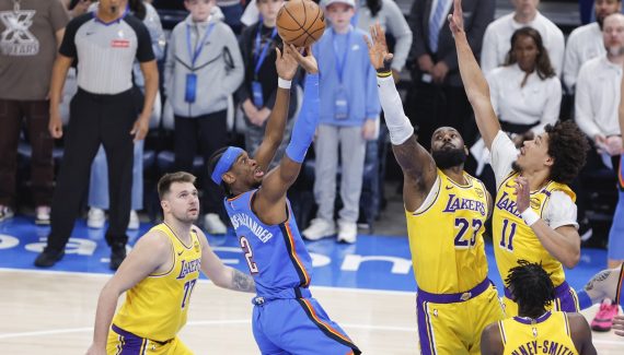 Les choses deviennent plus compliquées pour les Californiens ensuite. LeBron James perd des ballons avec des passes interceptées et la défense d’Oklahoma City commence à produire son effort. Du moins, un petit écart est fait à la pause (80-72). Le “King” se montre plus à son avantage en troisième quart-temps avec ses tirs de loin et Jaxson Hayes pèse à l’intérieur. Shai Gilgeous-Alexander est monté en température et le dernier quart-temps s’annonce passionnant.
