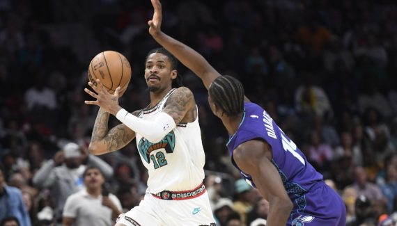 Pas d’arme à feu face à Charlotte après un 3-points inscrit face à Taj Gibson. Cette fois, Ja Morant a mimé de dégoupiller puis de lancer une grenade dans le public, avant de se boucher les oreilles.