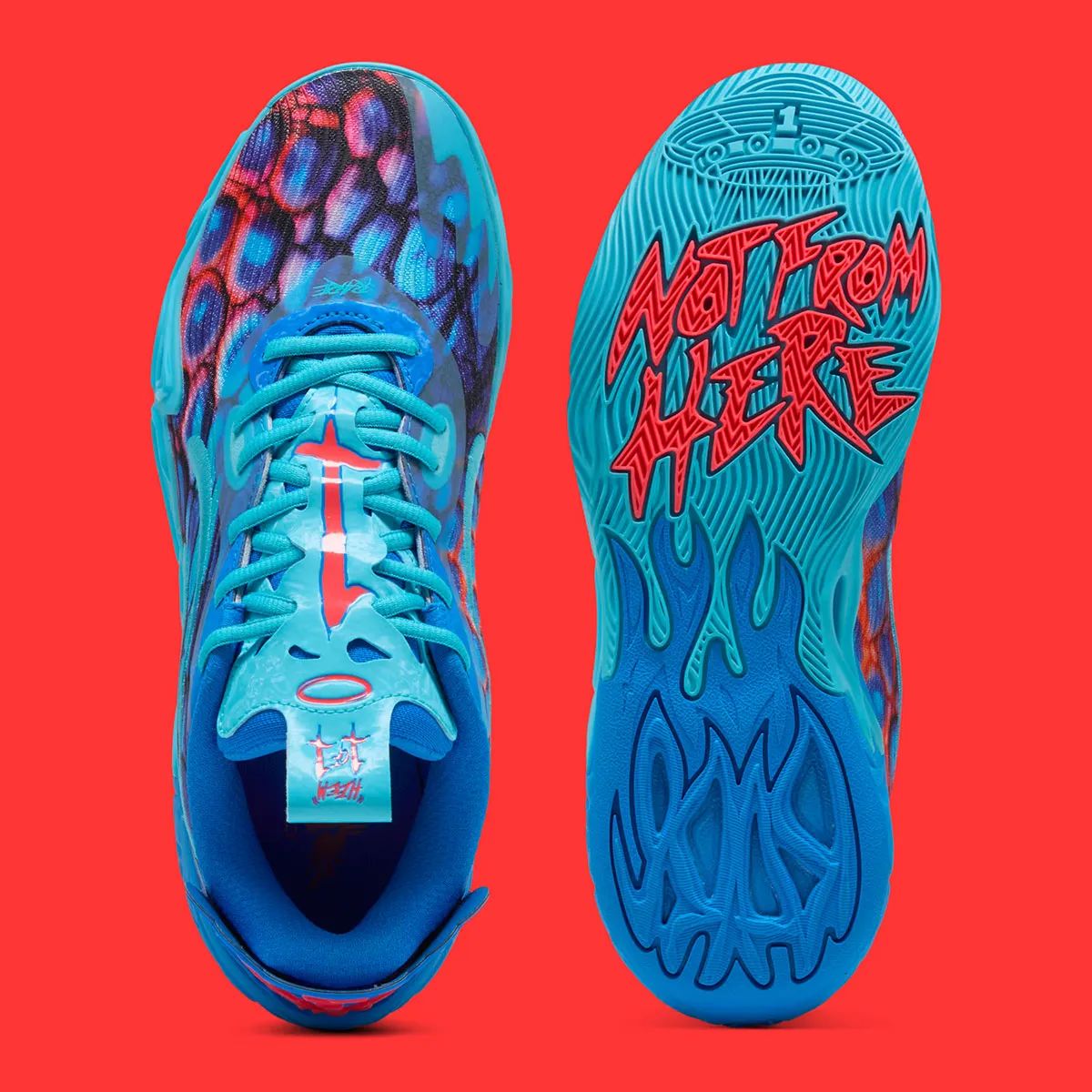 Marques de fabrique du modèle, les coloris devraient encore en mettre plein la vue. On commence par cette version « Alien Skins » aux différentes nuances de bleu assorties de touches de rouge.