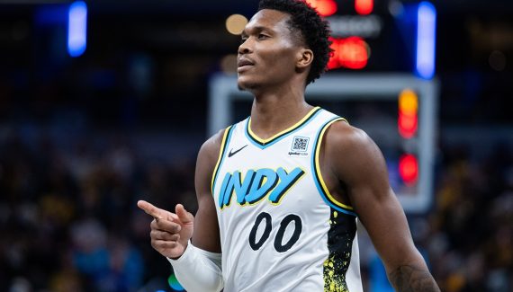 “Quand on y pense, la saison dernière, j’étais le bras en écharpe, à apporter des cookies dans l’avion.” Bennedict Mathurin se souvient de son printemps 2024. Opéré d’une déchirure du labrum de l’épaule droite en mars, il avait manqué les playoffs, donc le bon parcours de ses coéquipiers jusqu’en finale de conférence.