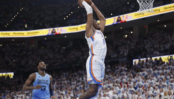 Lorsqu’il a récupéré le cuir dans sa moitié de terrain, Jalen Williams avait deux défenseurs face à lui. Malgré la présence de Ja Morant et Santi Aldama, l’ailier du Thunder a pris de la vitesse. Et fini par dépasser ses deux adversaires pour monter au dunk à une main.