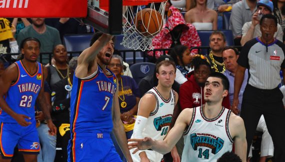 Derrière, Jalen Williams donne le premier avantage du match à OKC (109-108) puis le Thunder verrouille sa défense. Memphis est mené de trois points et John Konchar a l’occasion d’égaliser dans les dernières secondes, mais il se loupe. Le rebond est pris par Chet Holmgren qui envoie Alex Caruso finir en contre-attaque et sceller le sort du match.