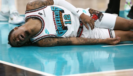 La superstar tombe au sol et grimace de douleur. Tant bien que mal, il parvient à se relever pour aller tirer ses lancers francs avant de rejoindre les vestiaires. Malheureusement, Ja Morant ne pourra pas revenir sur le parquet. Premier verdict : contusion à la hanche. En deuxième mi-temps, Morant apparaîtra avec des béquilles pour encourager ses coéquipiers.