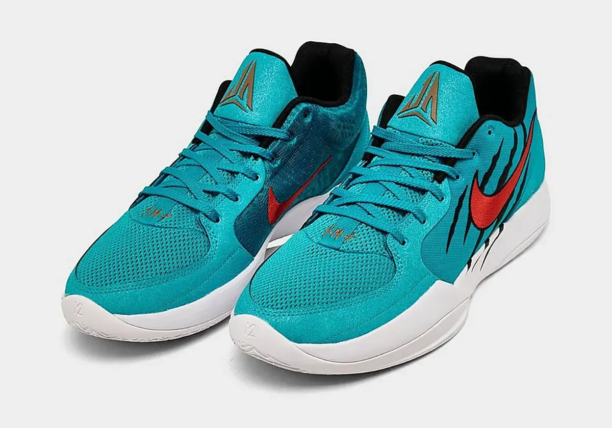C’est donc tout naturellement que Nike a renouvelé l’opération sur la Ja 2. Le coloris est pratiquement identique, avec une tige turquoise, ici flanquée d’un « Swoosh » en rouge et des mêmes traces de griffes de Grizzly en noir sur l’empeigne. L’ensemble repose sur une semelle blanche. Parmi les finitions, le logo du joueur apparaît en doré sur la languette. On est sur l'un des coloris les plus réussis de cette Ja 2. C'est bon, on peut à présent passer à la Nike Ja 3 !