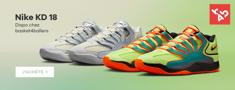 Pour le reste, et c’est ce qui fait sa force, la paire est complète à tous les niveaux, avec une semelle extérieure intelligemment dessinée pour une adhérence remarquable, une bonne qualité de rebond et de la stabilité. Chacun se fera son avis selon ses goûts au niveau du design, mais niveau technique, la KD 18 est un modèle du genre.