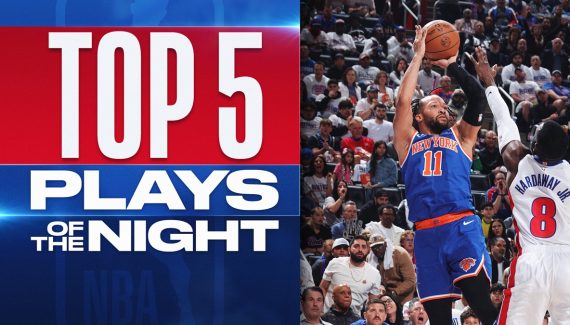 Les actions les plus spectaculaires de ce Top 5 ont eu lieu à Detroit, dans la belle rencontre entre les Pistons et les Knicks. On retrouve le dunk, main gauche, en contre-attaque de Mikal Bridges ou le shoot à 3-pts au buzzer de Malik Beasley.