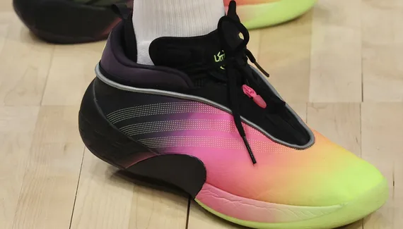 La paire avait déjà été présentée en marge du dernier All-Star Game. Cette fois, c'est le signe que sa sortie mondiale serait imminente, possiblement pour cet été. Donovan Mitchell a opté pour un coloris “flashy” avec un dégradé allant du vert fluo au noir sur la tige, passant par du jaune, de l'orange, du rose et du violet, dans un style ressemblant fortement au coloris de la D.O.N. Issue #6 que le joueur avait également dévoilé lors des playoffs, la saison dernière.