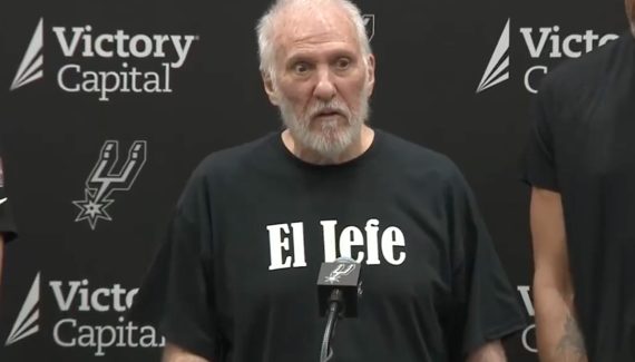 Après presque trois décennies à la tête de l’équipe, cinq titres NBA (1999, 2003, 2005, 2007 et 2014) et un record de victoires en saison régulière, Gregg Popovich devient “El Jefe” (le patron, en espagnol), comme président de la franchise. Comme il l’a indiqué sur son t-shirt, révélé avec l’aide de ses deux anciens joueurs.