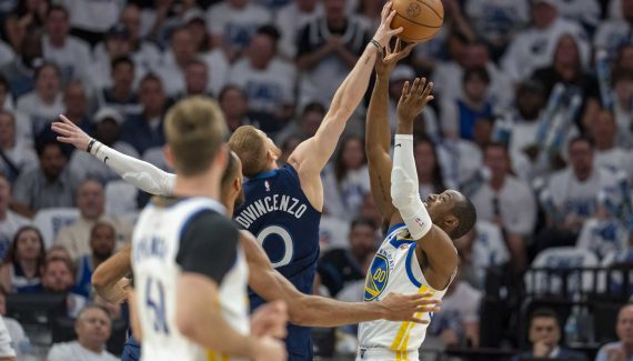 Trois minutes, et puis s’en va ! Pour remplacer Stephen Curry à l’entre-deux, Steve Kerr avait décidé de grandir son cinq de départ avec Quinten Post. Le rookie n’est pas un grand rebondeur, mais il peut écarter le jeu, et c’est essentiel pour permettre de trouver des espaces pour Jimmy Butler et Buddy Hield. Mais cette option n’aura donc duré que trois minutes, le temps que les Wolves mènent 13-0 !