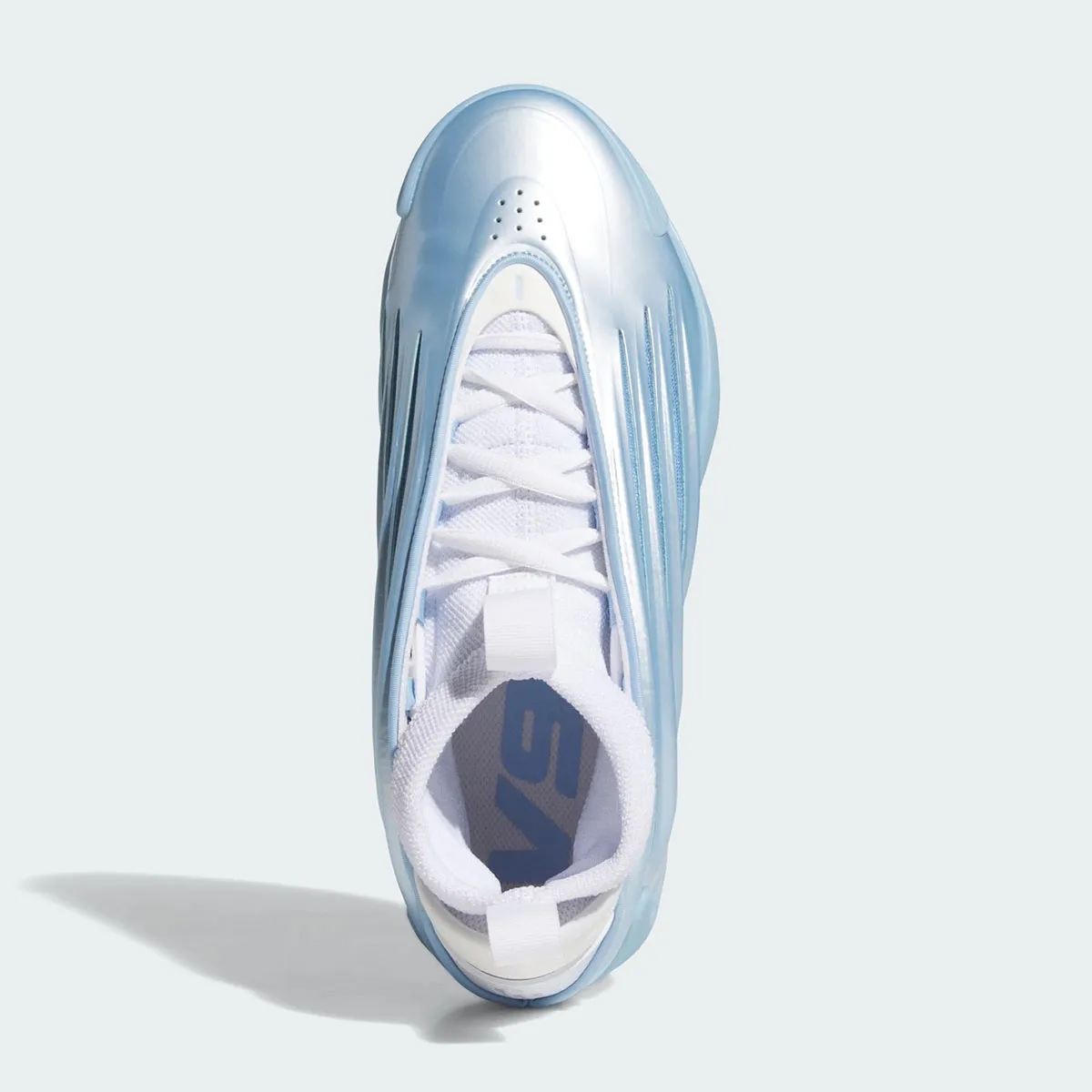 Un nouveau coloris « Ice Metallic » vient aujourd’hui compléter la collection, avec une partie supérieure dont le col en blanc et une base de ce bleu métal également assorti de touches de blanc, pour faire ressortir les trois bandes au niveau du talon notamment.