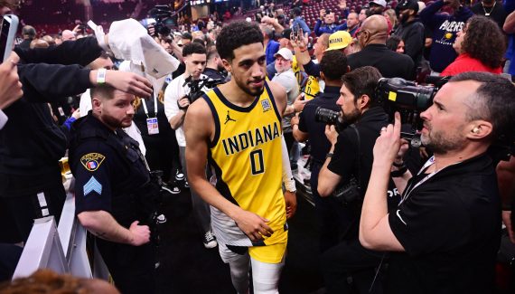 Le nouveau rebondissement a eu lieu lundi, lorsque l’incident est arrivé jusqu’aux oreilles de Tyrese Haliburton, et que le meneur des Pacers a décidé d’agir… en invitant Hans Perez à venir voir un match de la finale de conférence, à Indianapolis ! Au cours de l’émission “The Pat McAfee Show”, Hans Perez, pompier dans la vie, a pu afficher sa ferveur pour les Pacers en montrant notamment son tatouage de la franchise sur son poignet, jusqu’à ce que Tyrese Haliburton n’intervienne pour lui annoncer la bonne surprise, une invitation pour le Game 4 en direct d’Indianapolis !