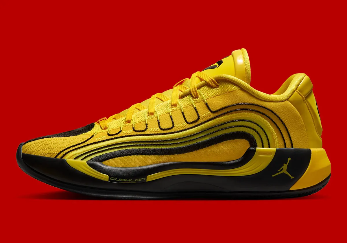Cette année, la Jordan Luka 4 a pris un peu d’avance, mais aura quand même son coloris “Quai 54”, dont les premières images ont été publiées ce week-end. Pour cette quatrième édition, on part sur un ensemble en jaune et noir, avec d’infimes finitions en rouge, comme le Jumpman figurant à la base des lacets ou un coeur présent sur la partie inférieure de la languette. Le logo du joueur apparaît en évidence sur la languette, au même titre que celui du Quai 54, sur le talon.