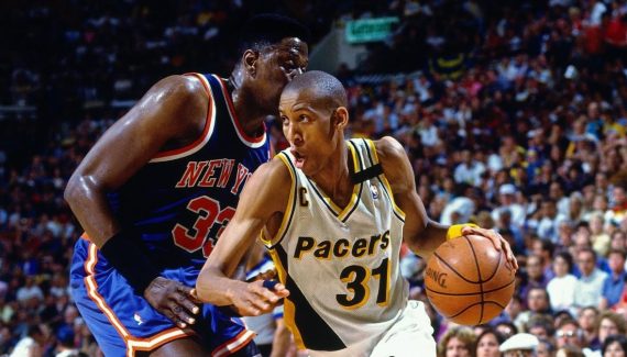 Après avoir remporté les deux premières manches, Patrick Ewing et ses coéquipiers s’inclinent trois fois de suite. C’est le Game 5 au Madison Square Garden qui reste dans les esprits, avec Reggie Miller qui renverse New York et un Spike Lee bien trop bavard au premier rang. Le shooteur des Pacers marque les mémoires avec son fameux « Choke Sign » et les Pacers sont aux portes des Finals chez eux. Mais, à Indianapolis, ils ne concluent pas et on repart à New York pour un Game 7.