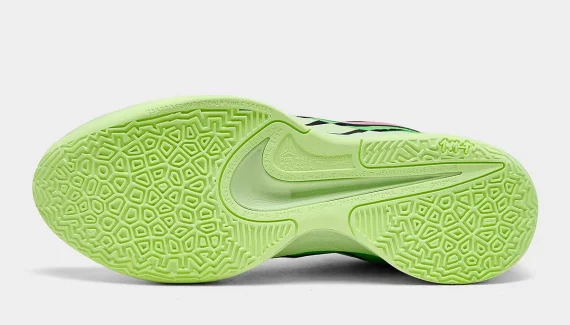 En effet, la tige va cette fois arborer un coloris “Watermelon”, soit couleur pastèque ! L’effet est plutôt simple avec une tige verte contrastée par un “Swoosh” rose sur l’empeigne. Les griffes de grizzly sont toujours là, tandis que l’ensemble repose sur une semelle en vert pâle.