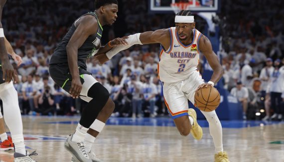 31 points, 9 passes, 5 rebonds et 3 interceptions : on pourrait presque croire que ce premier match de la finale de la conférence Ouest n’était qu’une journée de plus au bureau pour Shai Gilgeous-Alexander. Le meneur du Thunder a pourtant connu deux rencontres en une, entre la première et la deuxième période. Comme son leader, toute l’équipe d’Oklahoma City a toussoté pendant deux quart-temps avant de prendre la mesure des Wolves. Et “SGA” termine avec un nouveau match calibre MVP.