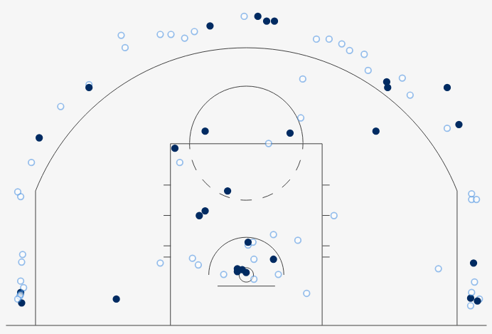 Les Wolves n’avaient tenté 50 tirs à 3-points qu’à cinq reprises durant la saison régulière, à chaque fois dans une bonne soirée à l’adresse, au-dessus des 38% de réussite. En playoffs, la sélection de tirs des hommes de Chris Finch était encore plus drastique, avec seules deux rencontres au-dessus des 40 tentatives de loin (contre les Lakers).