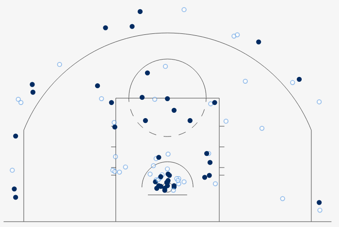 Le contraste est total avec le Thunder, qui n’a tenté sa chance derrière l’arc qu’à 21 reprises, de très loin son plus petit total de la saison (27 lors des deux confrontations contre un possible adversaire en finale, New York). Seuls sept matchs cette saison avaient vu une équipe prendre moins pris de tirs à 3-points, sur les 1 230 de la saison régulière ! Et aucune n’avait eu autant de réussite qu’OKC, qui s’est montré clinique sur ses “rares” tentatives dans le Game 1 (11/21). “On joue simplement au basket, je ne crois pas qu’on se soit jamais concentré sur quel genre de tirs on devait prendre, tant que c’étaient de bons tirs” a assuré Shai Gilgeous-Alexander. “J’imagine que les positions de tirs à 3-points ce soir étaient moins bonnes. On joue sur nos forces, peu importe ce à quoi ressemble le match.”