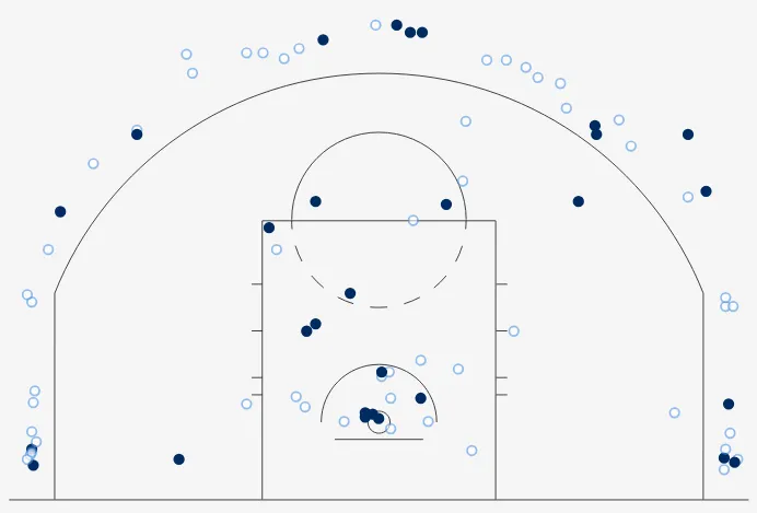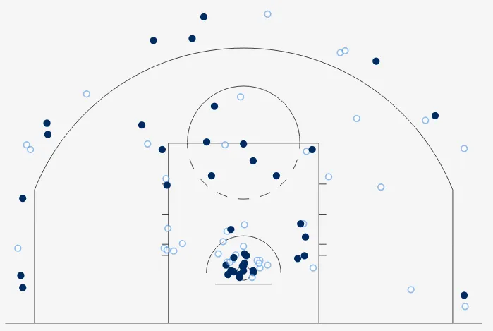 Les Wolves n'avaient tenté 50 tirs à 3-points qu'à cinq reprises durant la saison régulière, à chaque fois dans une bonne soirée à l'adresse, au-dessus des 38% de réussite. En playoffs, la sélection de tirs des hommes de Chris Finch était encore plus drastique, avec seules deux rencontres au-dessus des 40 tentatives de loin (contre les Lakers).