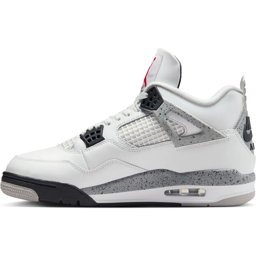 Le “Jumpman” apparait en rouge vif sur la languette, avec dessous l’inscription “Flight” en noir. On retrouve également une touche de rouge sous la semelle pour faire ressortir le “Nike” et la virgule. La Air Jordan 4 Retro “White Cement” est à retrouver sur Basket4Ballers au prix de 210 euros.