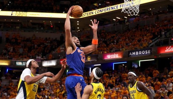 Dans la foulée, il inscrit un “layup”, puis prend un rebond offensif et réalise une passe décisive pour Delon Wright qui ramène les New-Yorkais à cinq longueurs. KAT envoie également un poster rageur sur Andrew Nembhard qui redonne enfin l’avantage aux Knicks.