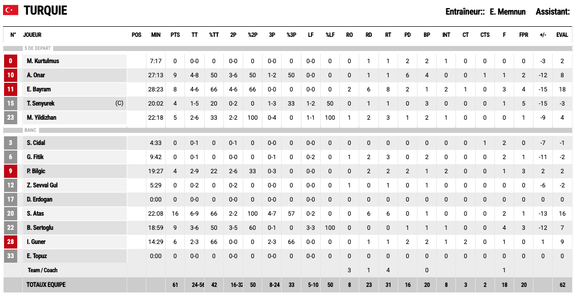 C’est sans Gabby Williams, Dominique Malonga, Carla Leite et Marine Johannès que l’Equipe de France féminine va donc disputer l’EuroBasket 2025, qui aura lieu du 18 au 29 juin à Athènes (Grèce). Et en attendant les autres WNBAers, Leïla Lacan, Marième Badiane et Janelle Salaün, qui vont rejoindre le groupe au fur et à mesure des prochains jours ou semaines, l’équipe de Jean-Aimé Toupane, emmenée par Iliana Rupert (26 points, 9 rebonds) a débuté sa préparation avec une victoire large (81-61) face à la Turquie, du côté de Reims.
