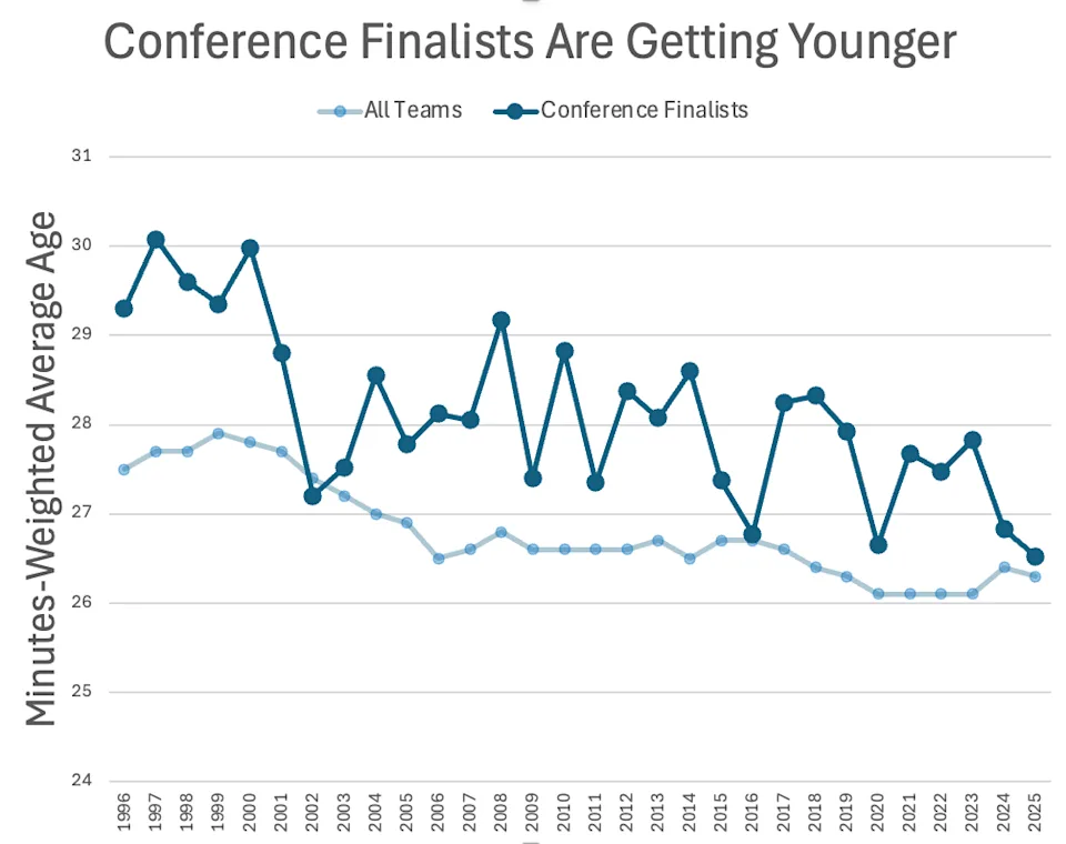 L’âge moyen des finalistes de conférence a d’ailleurs largement diminué sur les trente dernières années.
